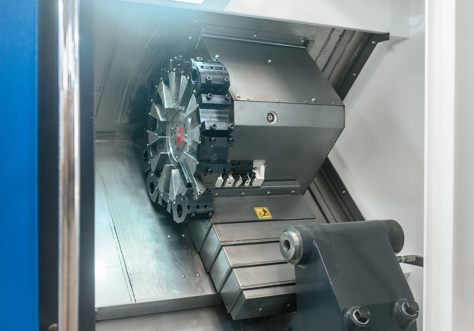 Possui torre porta ferramentas com 12 posições, com opcionais de ferramenta acionada e eixo Y.