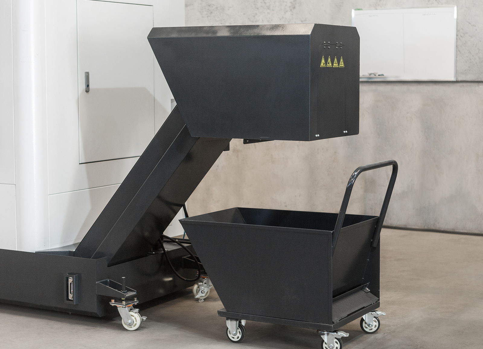 Máquina com base inclinada 45º fornece maior rigidez estrutural e estabilidade.